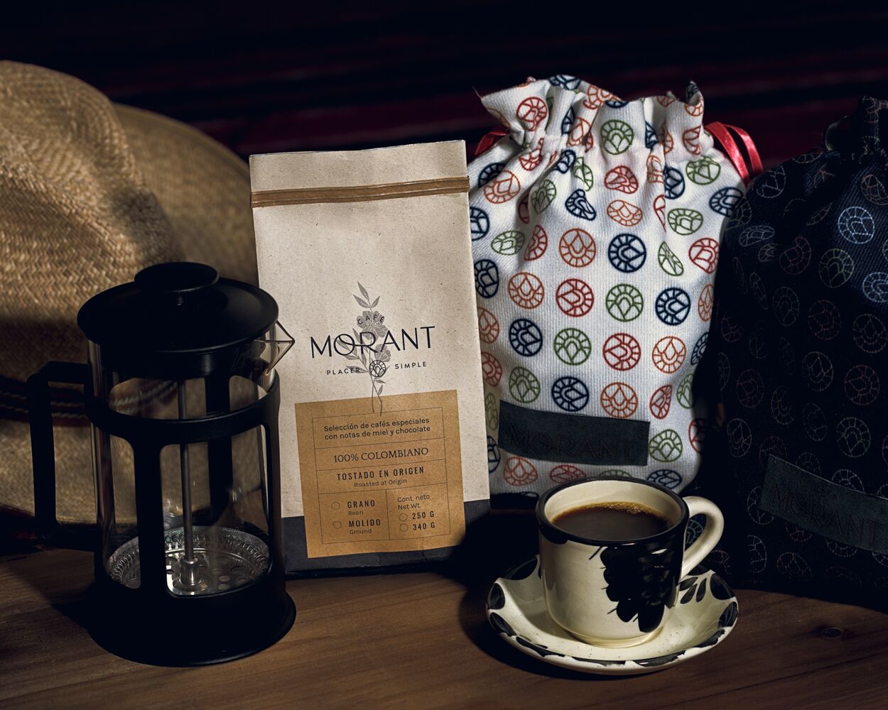 Lleva la esencia de café colombiano junto a ti con este exclusivo kit. Incluye nuestro Café Morant 100% arábica, un blend excepcional de las variedades castillo y caturra, acompañado de una prensa francesa para preparar cada taza a la perfección. Completa el set con una práctica bolsa de tela reutilizable, ideal para transportar tu café y cuidar del planeta.